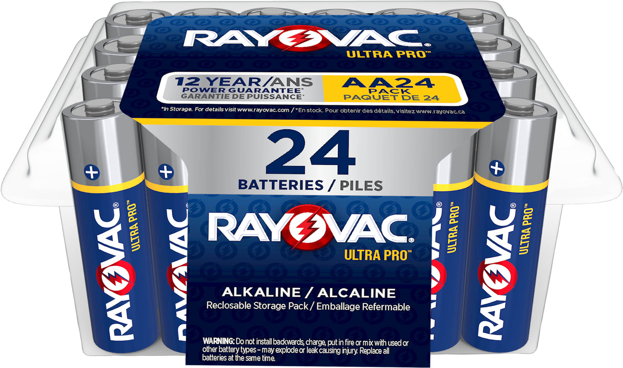 Rayovac Industrial Alkaline AA batteries. 24 batteries per clam pack.