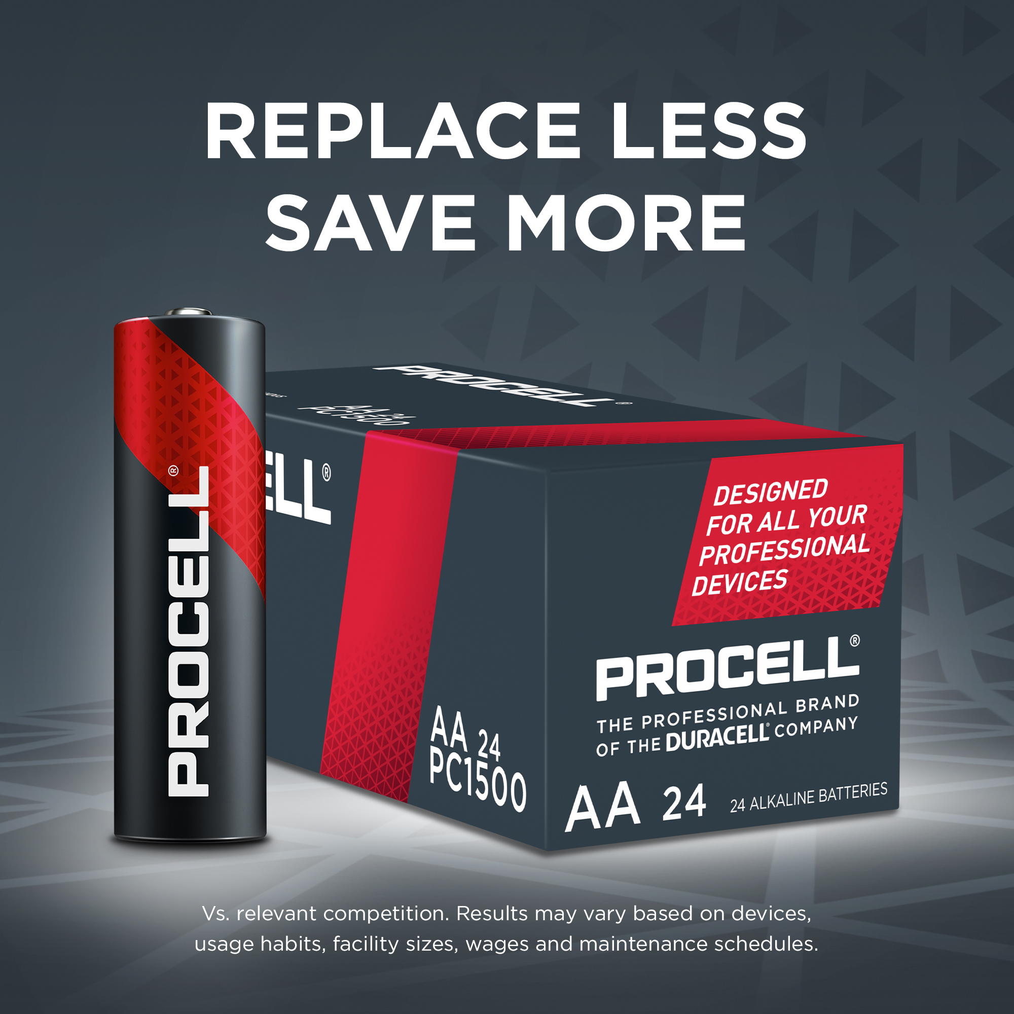 Procell Constant Series Alkaline AA battery. 24 pcs per pack, 144 pcs per case.